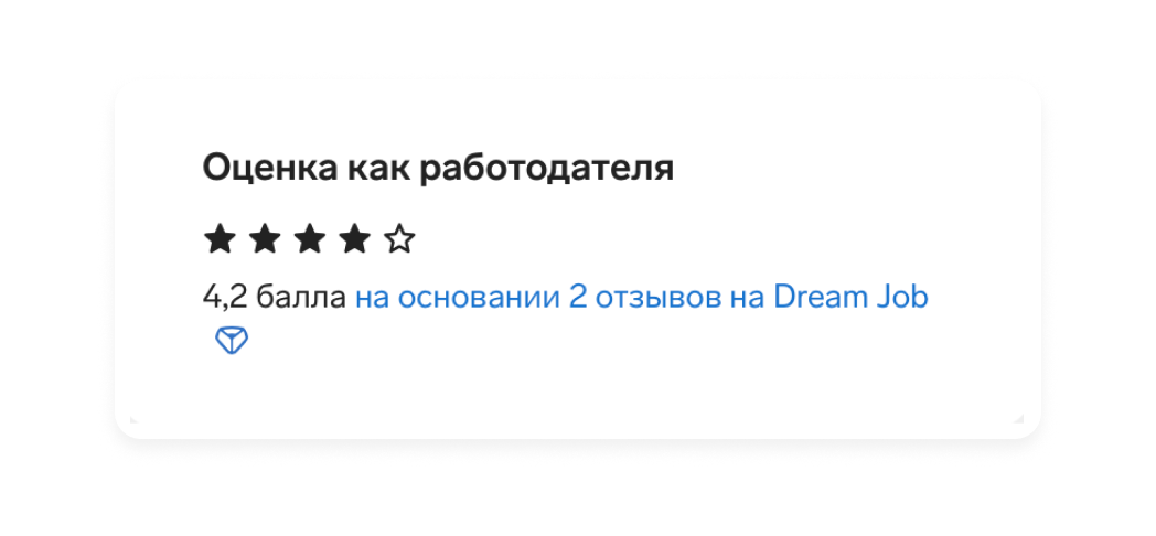 Узнайте, что говорят о контрагенте его сотрудники. Контур.Фокус показывает оценку компании как работодателя – она формируется на основе отзывов в Dream Job, где сотрудники делятся мнениями об условиях работы.