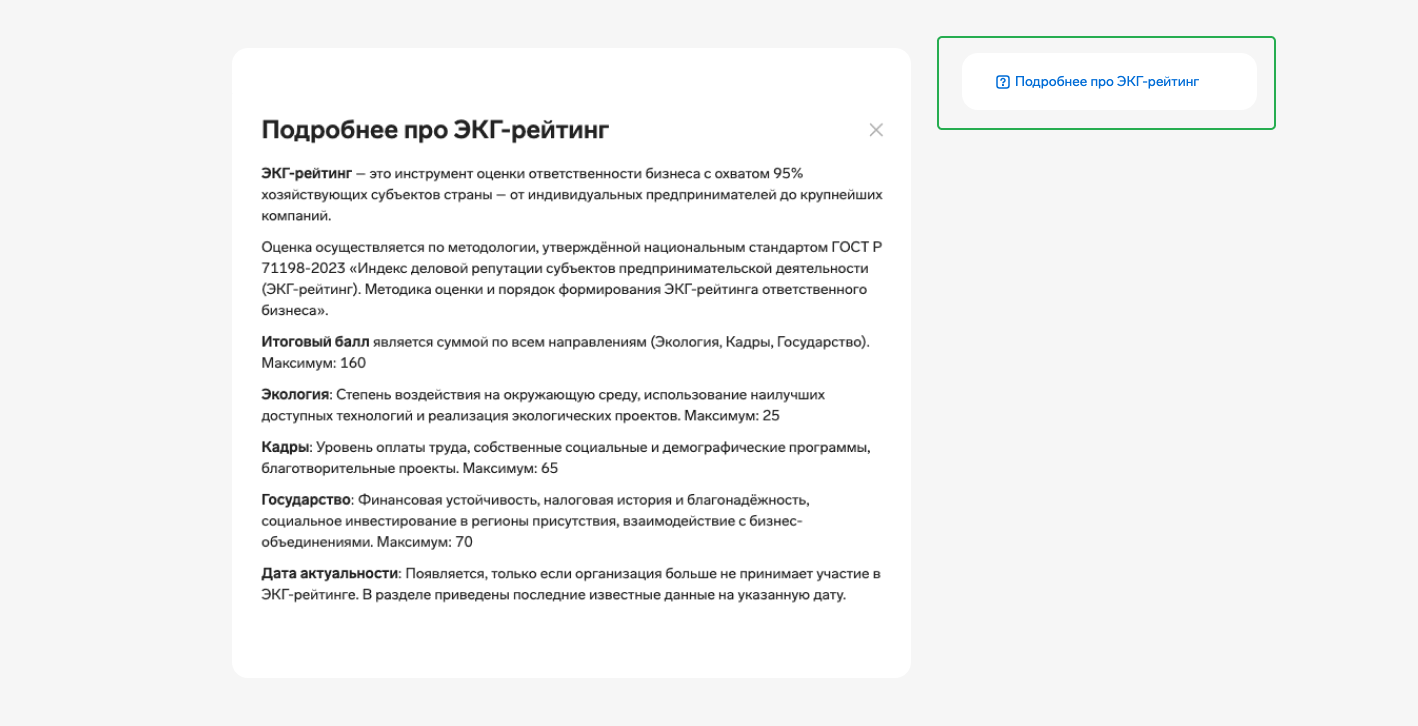 ЭКГ-рейтинг — это индекс деловой репутации компаний. Он разработан по ГОСТ Р 71198-2023 и помогает оценивать организации по трем направлениям: