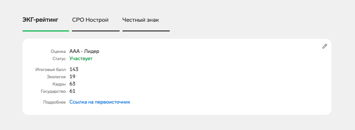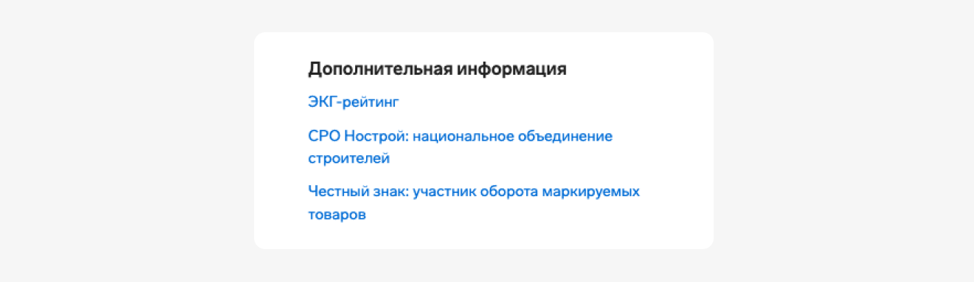 Если организация участвует в ЭКГ-рейтинге, то на сводке в блоке «Дополнительная информация» отобразится ссылка.