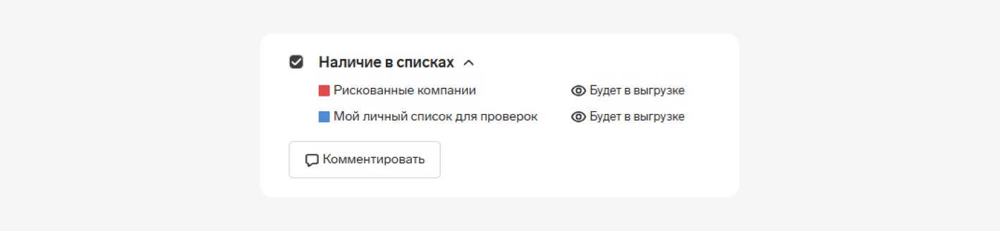Проверьте наличие компании в списках. Нахождение контрагента в реестре недобросовестных поставщиков может свидетельствовать о неблагонадежности. С помощью отчета по регламенту вы можете создавать собственные списки и выбирать, включать их в итоговый файл или нет. Это ускорит оценку и систематизирует проверку контрагентов.