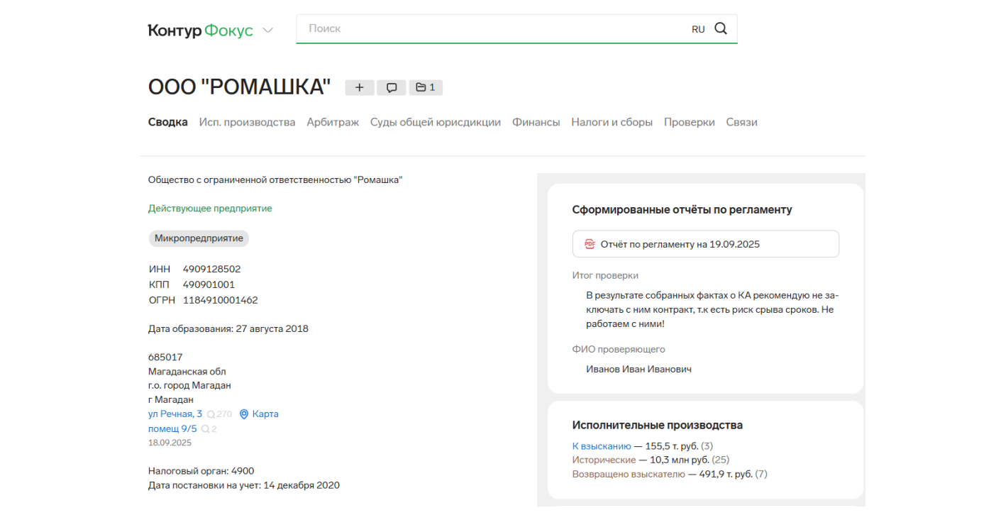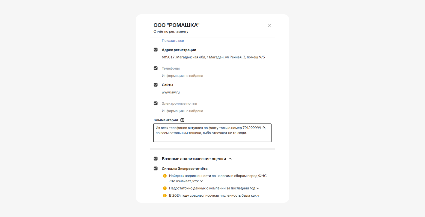 Сервис не только предоставит детальную информацию о бизнес-партнере, но и проанализирует ее